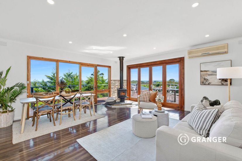 Revelling in stunning panoramas of Port Phillip Bay, while surrounded by well-established trees that deliver a balance of shade and visual impact, this unique 5-bedroom home holds a coastal character all of its own. Towering over the neighbourhood to showcase the water through all north-west facing windows, the home allows natural light to shine across its versatile dual-level layout.
