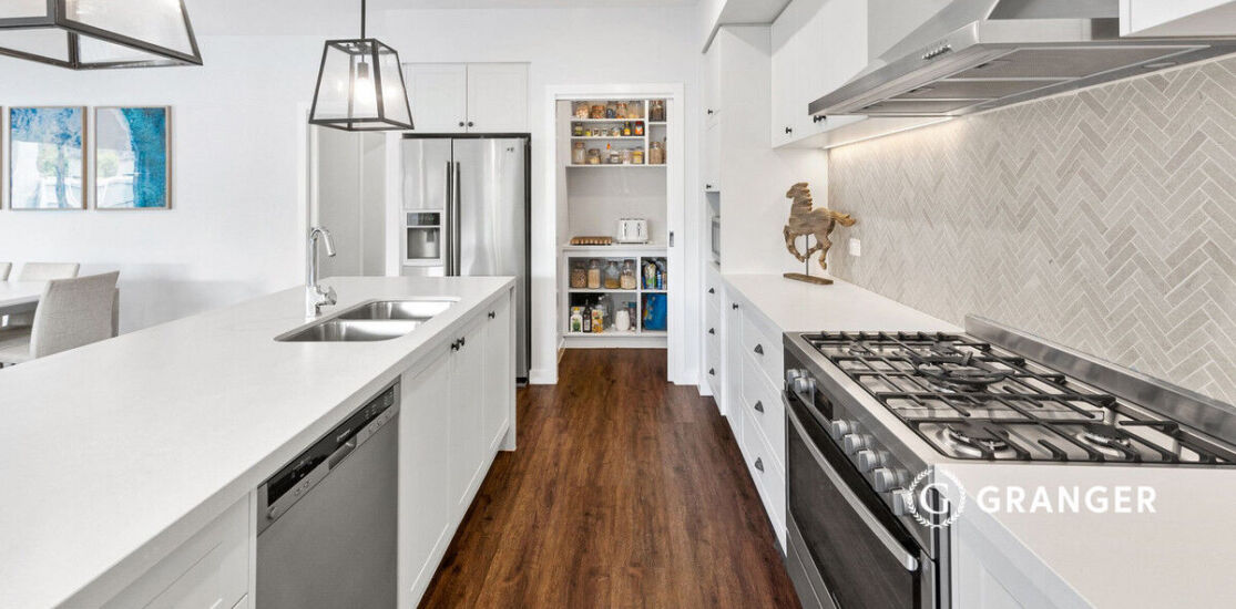 Expanding outside, glass sliders welcome connection to undercover alfresco and Astroturfed lawn, proving this home’s flexible and dynamic design. Enjoy sensational summer entertaining as it effortlessly spills across the internal and external environments, with comfort and style at the forefront of any party.