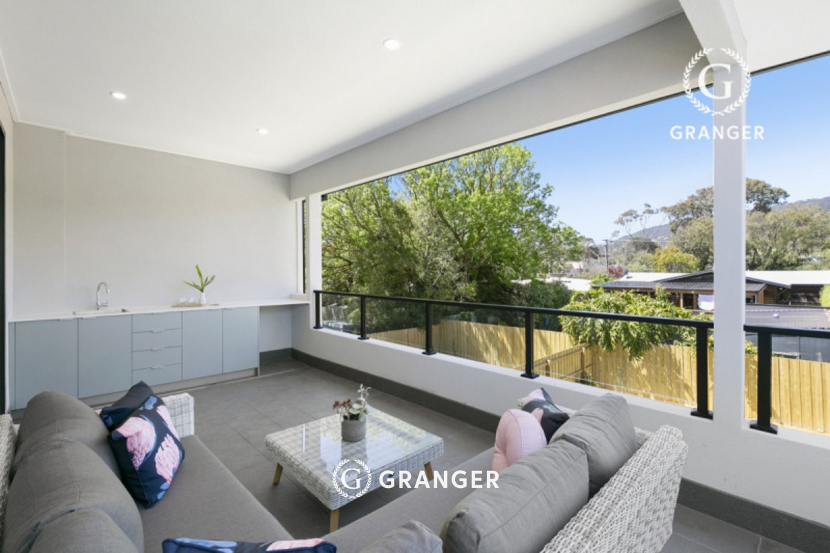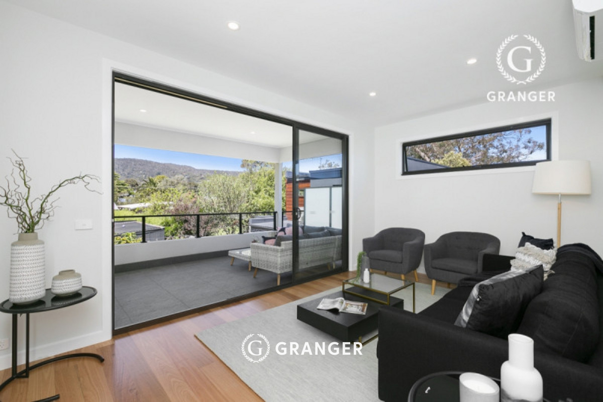 High quality, modern tiles adorn to all wet areas, with genuine solid hardwood flooring installed in all living, bedrooms and common areas. Two spacious balconies, one located off the master suite, with the other adjoining the upstairs living with wet bar, opening up and extending this living space to the outdoors, overlooking parts of Arthurs seat.