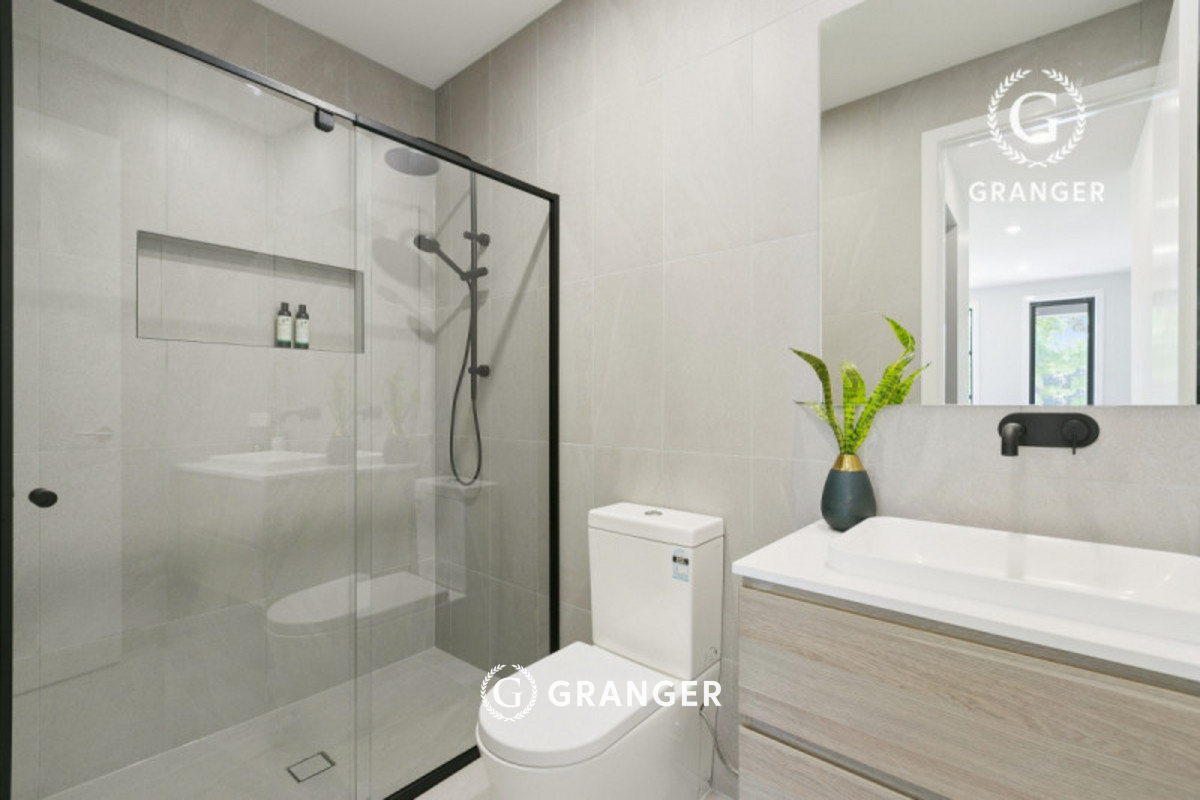 Boasting three bedrooms; each with their own ensuite, two with walk-in-robes and one with a built-in robe. Each bathroom offers quality fittings and fixtures, a generous glass shower, modern black accessories, trimmings and tapware.